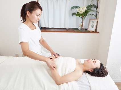 骨盤の調整を行い、骨盤内の血流を改善。首肩・背中・ふくらはぎの指圧も行います。